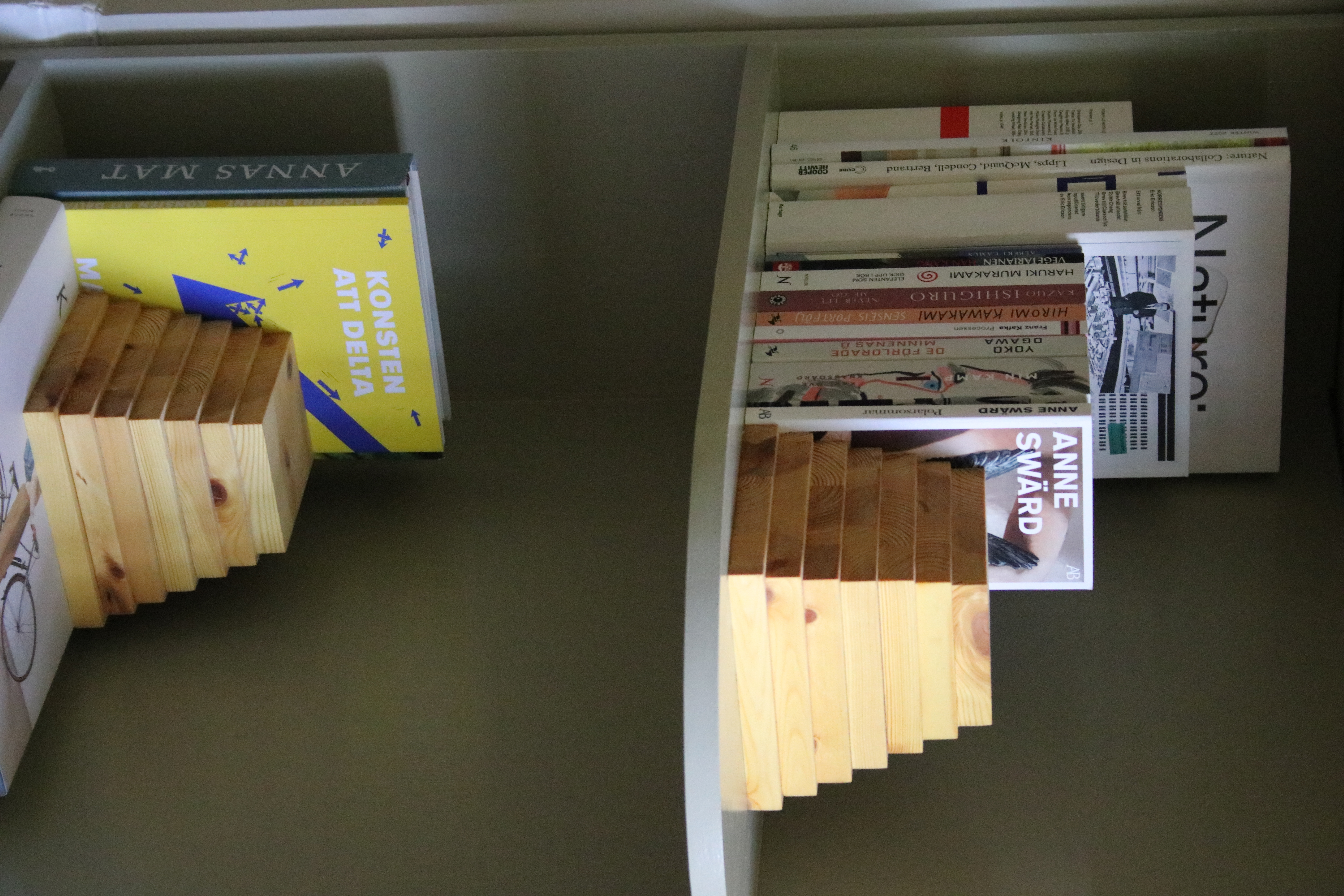 BUMP is a table set for a changing and adaptable environment, inspired by a gentle touch between two bodies. They are made of birch plywood coated with a pigmented bets that allow the wooden strucktur to shine through.